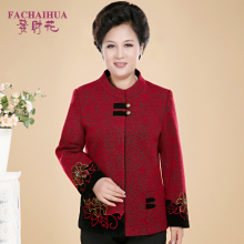 发财花妈妈装毛呢子外套中老年人女装春秋装奶奶上衣60岁婆婆春装