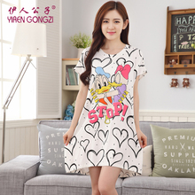 伊人公子夏季韩版甜美薄款纯棉睡裙卡通短袖睡衣女宽松休闲家居服
