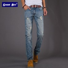 春夏复古怀旧牛仔裤男韩版修身小脚裤子青年直筒休闲潮流长裤男装