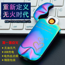 焦点USB充电打火机男防风创意双面电热丝摇一摇个性电子点烟器潮