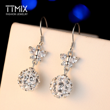 Ttmix梦蝶925银耳环女韩国 气质 长款时尚简约百搭球形耳坠配饰品