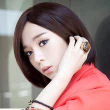 艾利丝假发女中长梨花头短发 bobo头蓬松齐斜刘海 整顶假发套