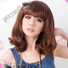 艾利丝假发女 梨花头中长卷发齐刘海甜美可爱长卷发 修脸时尚短发