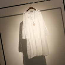 哦呀苏米 2017夏欧美宫廷风刺绣蕾丝连衣裙女中长款宽松大码裙子