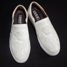 春季新品男鞋男士真皮乐福鞋潮流韩版休闲鞋英伦皮鞋个性印花板鞋