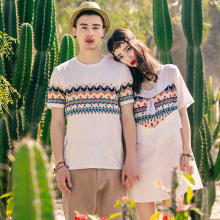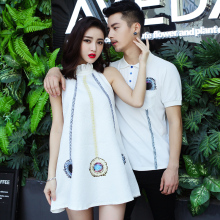 2017春装新款情侣装纯棉t恤短袖圆领修身上衣百搭打底衫女连衣裙