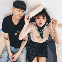 班服学生上衣套头夏装情侣装潮韩版刺绣宽松纯棉短袖情侣t恤女