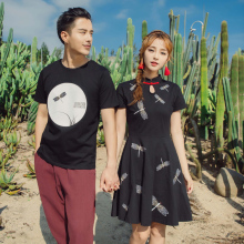 2017春装学生情侣装夏装新款潮韩版搞怪短袖t恤开叉女连衣裙夏季