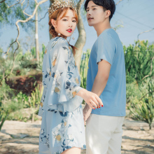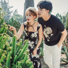 2017春装连衣裙新款度假沙滩背带裙长裙情侣装韩版碎花短袖t恤女