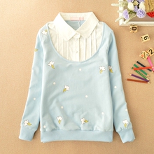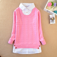 【纯棉线衣】2016春秋女童毛衣套头纯棉假两件中大童翻领针织衫