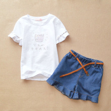 皮皮熊17新品夏装中大女童短袖+短裤两件套纯棉夏季公主花边套装