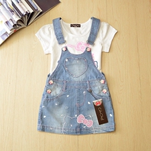 断码夏季童装 女童短袖+牛仔背带裤 背带裙套装卡通印花柔软