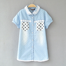 断码清仓 140皮皮熊8岁女童夏装 翻领短袖衬衫T恤 夏季穿上衣