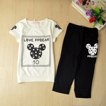 断码清仓 皮皮熊2016新款女童夏装短袖套装两件套中大童宽松