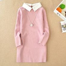 中大童秋装2016新款女童翻领毛衣针织衫中长款纯棉休闲套头衫包邮