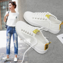 夏季2017新款港风平底小白鞋女街拍帆布鞋百搭韩版镂空学生休闲鞋