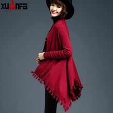 2017春秋新款大码女装外套中长款流苏针织开衫韩版不规则毛衣披肩