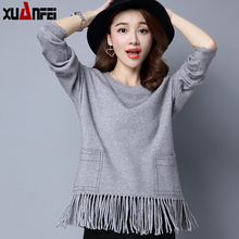 短款流苏套头毛衣女2016新款潮秋装女装大码罩衫长袖时尚女士上衣