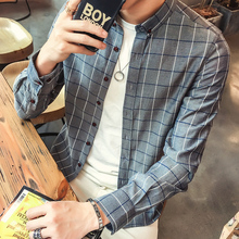 MJX2017春季纯棉小格子衬衫男装长袖韩版商务休闲打底修身衬衣秋