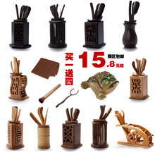 竹制茶道六君子组合茶具茶盘配件功夫茶具鸡翅黑檀实木茶道