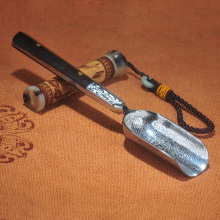 陶瓷故事黑檀木铜茶匙创意大马士革钢茶勺茶则茶铲茶道六君子包邮