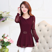 玥裳蕾丝衫女2016秋装新品韩版修身大码短款上衣百搭小衫雪纺衫女
