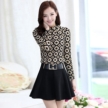 连衣裙2015秋装新款蓬蓬裙秋冬美裙修身显瘦针织厚打底裙假两件套