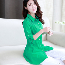 2015秋季新品中长款衬衣女五分袖修身大码女装长款春秋长袖女衬衫