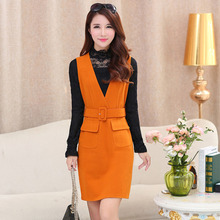 玥裳套装裙2016秋装新款女装中裙a字裙女士马甲长袖连衣裙两件套