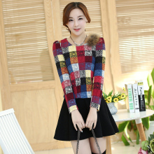 2015连衣裙秋装新款韩版女装泡泡袖修身格子假两件套裙长袖连衣裙