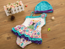 清仓不退换~韩国童装 女童连体泳衣 儿童裙式泳装泳帽 夏装y2d