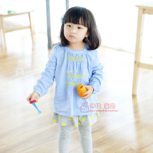 清仓不退换~童装 女童圆领后开扣上衣T恤罩衫 打底衫 2015秋装S7b