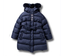 咔哇童装~女童经典藏蓝色带钻棉服 儿童冬装 2016冬季新款x17对