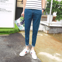 男士夏季薄款宽松九分牛仔裤 男生小脚哈伦裤男修身休闲9分男裤子