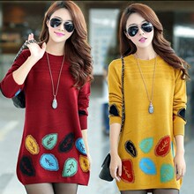 2015冬装新款女装30-50岁 秋季打底毛衣连衣裙中长款套头针织衫女