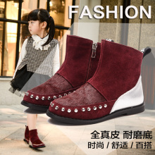 女童靴子真皮儿童公主棉靴短靴子中大童秋冬新款加薄绒雪地靴韩版