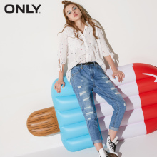 聚ONLY2017夏季新品纯棉低腰破洞男友风宽松牛仔裤女|117232503