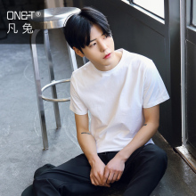 凡兔男装夏季白色t恤男短袖圆领纯色纯白衣服潮修身韩版男士体恤