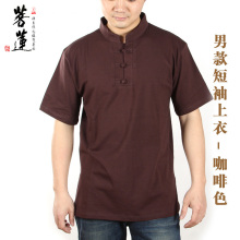 菩莲奥戴尔天丝棉夏秋季中国风禅修居士短袖男休闲T恤打坐服-A