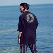 腔调 秋季新款 原创设计中国风复古莲花棉麻外套 亚麻防晒衣 男装