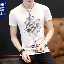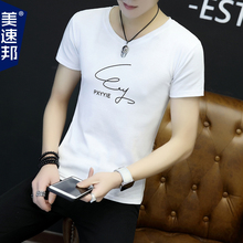 2017夏季短袖t恤男V领韩版青年修身白色半袖体恤衫学生潮流衣服男