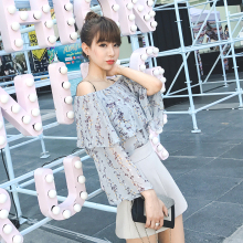 【大瓶】UNIHOME定制 小清新LOOK水墨青灰夏荷叶边宽松碎花雪纺衫