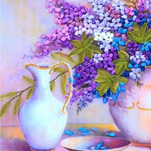 包邮新款丝带绣客厅挂画 小幅小画卧室房间 丝带十字刺绣紫蔓丁香
