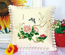 四件包邮唐唐精准印花十字绣抱枕 客厅花草靠垫鸟语花香蝶与梅兰