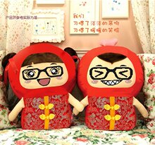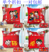 2017新款精准印花十字绣抱枕 喜庆结婚靠垫 情侣娃娃 包邮