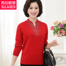 中老年女装春装长袖打底衫40-50岁妈妈装薄毛衣中年女装针织上衣
