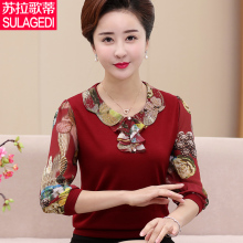 妈妈装春装纱袖针织衫中年妇女T恤衫中老年女装春秋打底衫七分袖