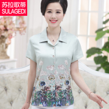 中老年女装夏装短袖衬衫妈妈装大码雪纺印花衬衣薄奶奶装夏季上衣