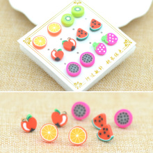 软陶水果耳钉 女气质防过敏韩国耳饰地摊货源盒装耳钉批发潮