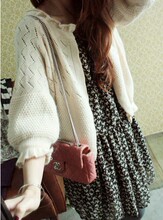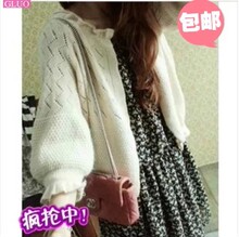 春秋vivi灯笼七分袖镂空针织衫短款百搭空调披肩薄开衫外套毛衣女